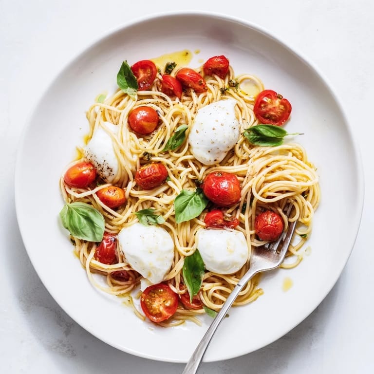 Save The first time I made this, my kitchen smelled like an Italian bistro in late summer when cherry tomatoes hit that hot olive oil. I was trying to recreate something I'd eaten at a tiny restaurant in Rome, and honestly, I was skeptical about whether burrata would actually work with pasta. But watching that creamy center melt into the tomato juices and coat every strand of spaghetti converted me instantly.