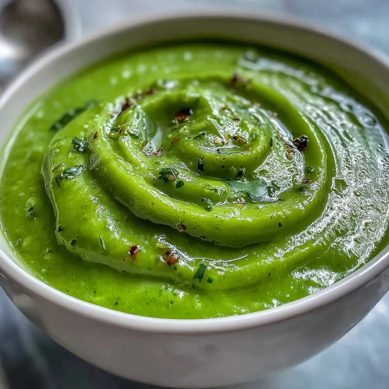 I made this for my mother on a Sunday when she mentioned feeling tired of heavy winter meals. She took one spoonful, closed her eyes, and asked if I'd added something special to the pesto. I hadn't, but somehow the simplicity of fresh vegetables blending into silk felt like enough. We sat at the kitchen table on a gray afternoon and the soup seemed to brighten everything, including her mood.