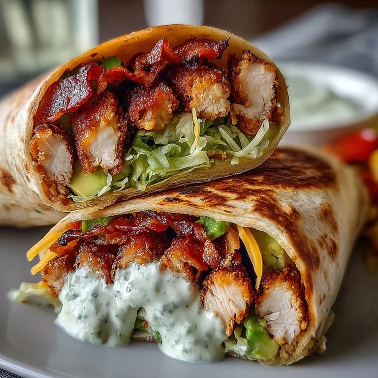 Save There was a Tuesday afternoon when I stood staring into my fridge, tired and uninspired, until I spotted leftover bacon from breakfast and a pack of chicken I'd forgotten about. I grabbed a tortilla, started layering things instinctively, and within an hour I had something that tasted far better than it had any right to. The crunch of the bacon against the creamy sauce, the way the cheese melted into every bite—it felt like I'd stumbled onto something worth keeping. That wrap became my go-to whenever I needed comfort wrapped in something I could hold with one hand.