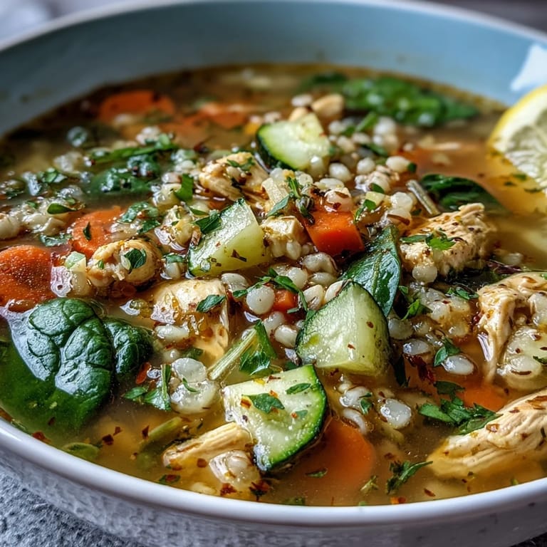 Save There's a particular kind of afternoon when the kitchen needs to feel less like a workspace and more like a refuge. I was sorting through spices one gray November day, and a jar of turmeric caught the light—suddenly I wanted to build an entire meal around that golden warmth. What started as a curiosity about chicken and barley became this soup, the kind that fills your home with a smell that makes everyone ask what's cooking before they even walk in.